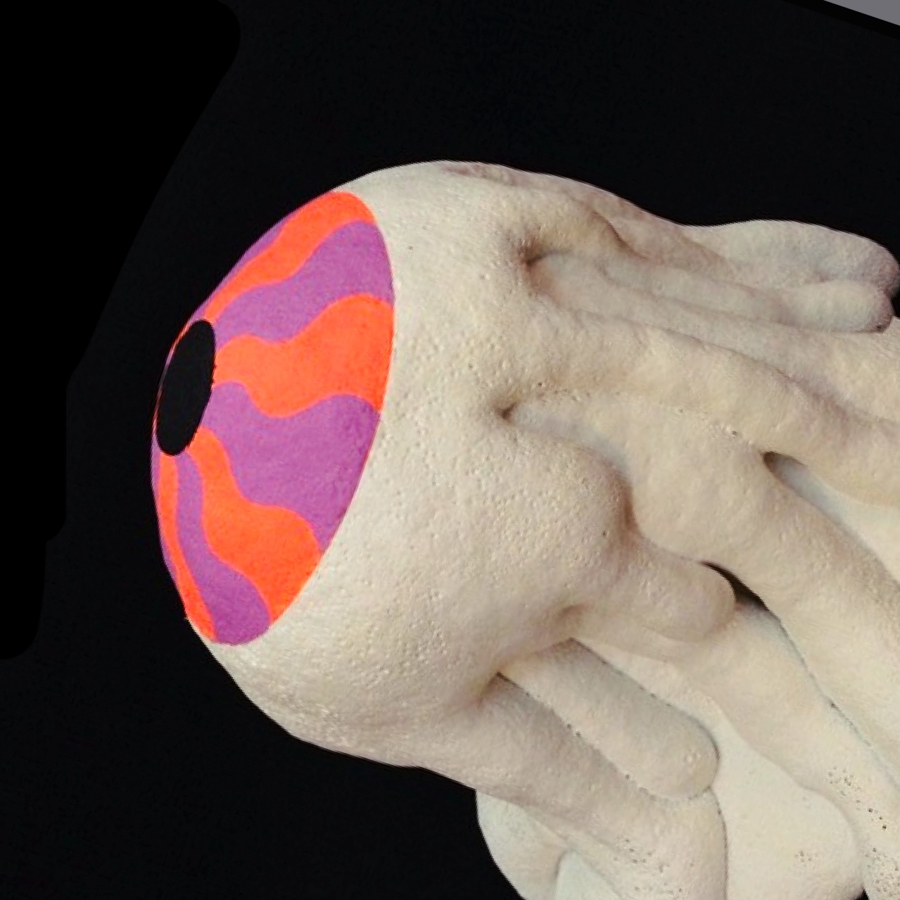 I made my first blob sculpture in my studio space at art school in November 2013, using 2-part expanding foam and UV powder pigment so it would glow softly under blacklight. I’m not sure if I’d seen Benglis’ ‘Phantom’ yet or not. The UV fascination came more from my interest in 1960’s posters and 1990’s rave aesthetics. I’ve always been into garish stuff.
